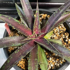 マンガベ(マンフレダとアガベの交配種)こちらもベランダで育ててた子、根が回ってました🌀思い切って地植えに挑戦✊