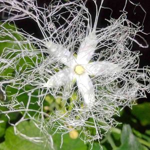 昨晩、日没と共に懐中電灯🔦片手に友達と山に入り やっと❗️やっと❗️ 3年間見たくてたまらなかったカラスウリの花を見る事ができました💓 山の中は真っ暗ですがライトを消し暗闇に目が慣れると 白くフワッっと咲く姿が見える様になるではありませんか🤭 とても神秘的で感動の瞬間でした 次回は 赤くなった実を割り黒光りした大黒様の様な種を見る事です‼️ ワクワクが止まらない~💕