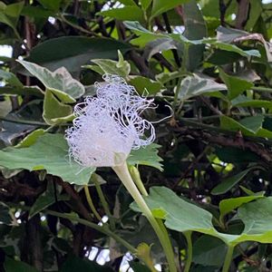 🌿カラスウリ🌿烏瓜 昨日コンビニの帰りに近道したら、もうカラスウリが咲いていてびっくり😯 カラスウリは雌雄別株でこれは雄花。 ウバメガシの生け垣に何株も絡まって、花もいっぱい❗️ 知る人ぞ知る、秘密のカラスウリロードなんです 🤍💚🤍💚🤍💚🤍💚🤍💚 2023.7.6撮影