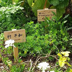 電停横の花壇🚉 5月に広島で開かれるG7サミットを応援する小さなプラカード🕊 𓂃𓈒 𓂂𓏸 お花を通して世界が平和になれたらいいですね(*ˊᵕˋ*)੭ ੈ♡🌻₊✼̥୭*🌻₊✼̥୭*🌻₊✼̥୭*🌻₊✼̥୭*🌻₊✼̥