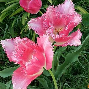 今日のお花🌷.* フリンジ咲きのチューリップが電停横の花壇に咲いていました🚉 花びらの周りに細かい切れ込みが入った初めて見る種類です👀 なんという品種なのでしょうか? 去年4月のpicです