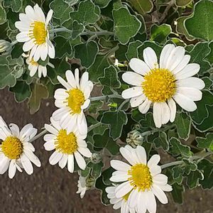 今日のお花 キ ク♡ 電停横の花壇に咲いている 足摺野菊です🚉 葉の裏側が白い絹毛に覆われていて、表から見るとグリーンに白い縁取りがされているように見えます🌿🌿🌿 去年11月のpicです