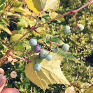 色々な方の投稿で綺麗だなぁと見ていたノブドウ🍇 私も見てみたいなぁと思っていた所 マンションの植木に混ざってました! ほとんど白と茶色の実ばかりだったのですが ひっくり返すと色づきはじめてる実が! ん?逆なのかな 色づいたものが薄くなっている状態かな? 茎がピンクっぽい所もあり可愛い やっと見れた〜😊