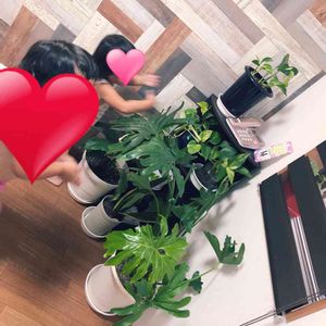 室内組のフィロデンドロン、ゴムの木、カポック オリヅルラン、アンスリューム、ドナセラの 日光浴&埃の掃除😊 日光浴が強いので、もうそろそろ お迎えいってきます✨