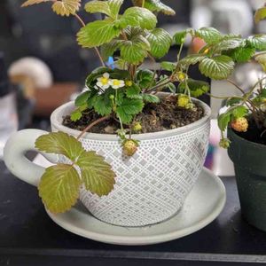 庭に植えていたワイルドストロベリーをリビングに移動しました♪ 植物があると癒やされますね( ◜‿◝ )