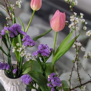 黄色のビオラと、紫と白のチューリップを植えました🌷