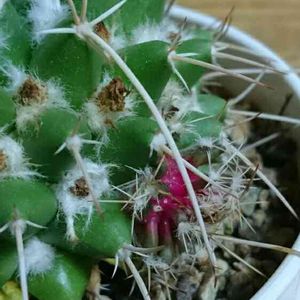 さぼてん実生13才 これは何だろ?今日気がつきました。先に投稿した実は取れました。今回のは、実じゃないの?まさか真っ赤な子供?
