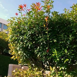 山桃の木 徒長した部分が赤く 紅葉しています🍁 気持ちが良い天気🌞