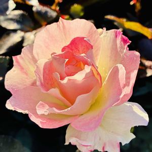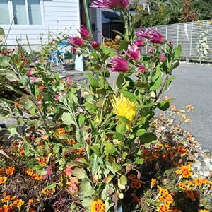 おはようございます😃 薔薇🌹が咲きました モリンバ 朝日🌅に当たって綺麗です。 ❷ミニ薔薇🟡 ❸菊. 食用菊🔴🟡 もつてのほか