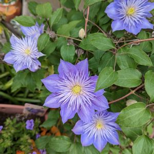 昨年秋に見切り品で買って来たクレマチス 名前はわからないけど可愛い花が咲きました😄 本当に捨て値だったのに… 見切り品コーナー😁👍です