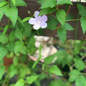 この花、葉っぱの形が色々あるのを見ていただきたく、 ベランダの壁に茎を並べてみました🐷 うーん、分かるかな… 右下にカリブラコアを寄せ植えしたのは失敗でした😔