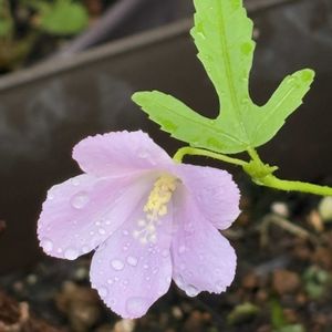 ハイビスカス🌺ロバツス 【 マダガスカル原産のハイビスカスの原種で這性品種です。(非耐寒性常緑低木) 】 7/1に『名前を教えて』に投稿した こぼれ種の🌱はロバツスでした🙌 あの時は何の根拠もなくロバツスの気がしていたのですが😅 ツルが伸び、蕾がついた時にやっと確信できました。 雨上がりの今朝無事に3つ開花🌺 株元を見ると、まだ次々と芽吹いています🌱🌱🌱 種まきした方は、未だうんともすんとも🤔どういうことでしょう? ここから掘り上げて庭に定植しようかな♪
