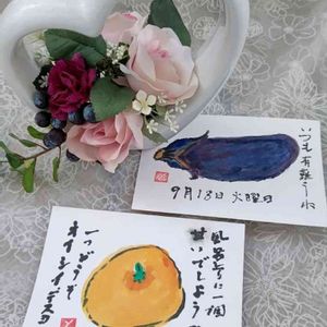 おはようございます 今日は母の描いた絵手紙を💕 もう他界していますが 90歳を過ぎたときに 迷惑かけるから施設に行くよと 自分から進んで入所 そこで絵手紙倶楽部に入り 月に一度葉書🍀が届きました