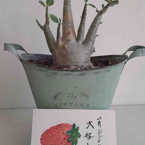 此方はアデニウム君 今この状態で良いのかな⁉️ 母の絵手紙と一緒に❣️🍀 苺が大好き🍀😌🍀でした 今日も晴れ☀️
