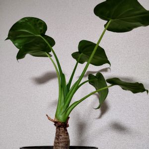 芋だけになって半年、 ダメ元で外に出して3ヶ月、こんなに大きくなりました! 奇跡の復活!小さいけど子株も出てき始めてる。 外の環境があってたんだなぁ 外の最低気温が5℃下回り始めたから室内に入れたけど、室内は室内で心配…