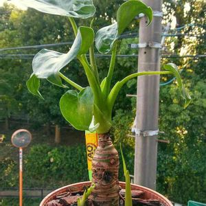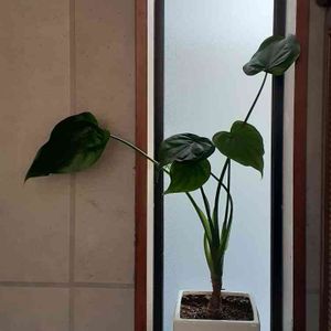 我が家の観葉植物3姉妹 植え替えと栄養剤ですこぶる元気なシマクワズイモさん。 グングン伸びてモンステラの高さまで届きそうな勢い