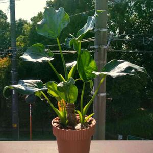 ちょっと前に買ったシマクワズイモの生長が早い。 大事に育てます。