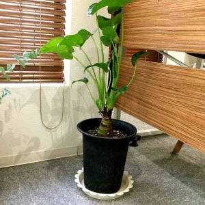 個人的に思入れのあるシマクワズイモさん。 植え替えてから葉のサイズが大きくなっていって、ついに手のひら以上の大きさに🌱