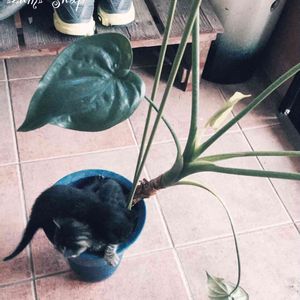日曜日、ベランダで日光浴させたシマクワズイモ。 すこし徒長気味にダランダランしてたのがピーンとした! やっぱり太陽が大好きなんだな〜🌞