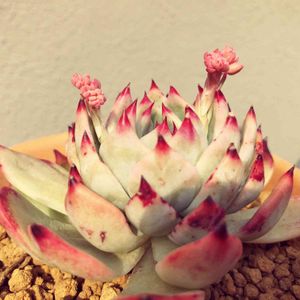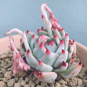アガボイデス プロリフェラのタグがついていましたがエケベリア図鑑をみるとエボニー錦の顔に似てる。😥 真実は…😕