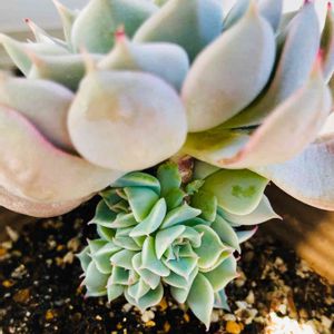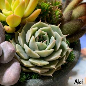 仲間入り( ˊᵕˋ )♡ ラウイ×七福美尼 バラ園SALE2回目の訪問で買った子です🎵 初日に行った時気になったけど、なんか買わなかった🤔たぶん、カゴに入れ忘れ💥 しかしやっぱり買ってよかった~😊🙌 可愛い可愛い❤️ お子様も、早く大きくなって株分けしたいな~✂️ 今日は少しだけ多肉事できました😚👍 お気に入りの寄せ植えが出来上がりそうです💖