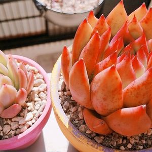 こんにちは(#^_^#) 最近のお気に入り。光の画家レンブラントの名前を持つエケベリアです。 ツヤツヤ系ではないのに、光っているような透明感。室内組だったのに、あまり形も崩れませんでした♡