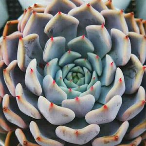 こんばんは🎵🎵 今日は遅い時間帯の投稿です💦😅 【エケベリア 花うららちゃん💕】 ここ数日でキュッと葉っぱが上がって来て 爪が赤くなりました💕💕 マニキュア付けて女の子だね〜〜(*⁰▿⁰*)(笑)💅🏻
