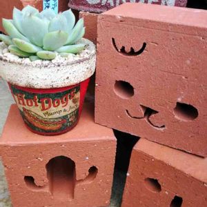 ブランデティ×静夜~✨ おとといYUKO☆YUKO さんからも 可愛いリメ鉢頂いたので💕 我が家に最近やってきた レンガマンのお顔とサボテンレンガ🌵 そして招き猫ちゃんレンガと一緒に はいち~ず✨📷 みんな可愛い~💕 レンガマンシリーズ もっと増やしたいなっ(๑→ܫ←)