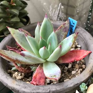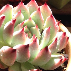 上は2ヶ月前のお姿💕 下は昨日のお姿🍀 形も色も変わりすぎでしょっ! (日が当たらない玄関に置いといた) 水はほとんどあげてなかったぁ(๑•﹏•)