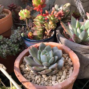 SARAさんのバケツ型のリメ缶に寄せ植え~✨ 成長点のないチワワちゃんも入れました💕 これから子沢山になるのかしら(◕ฺ ◡ฺ ◕ฺ)
