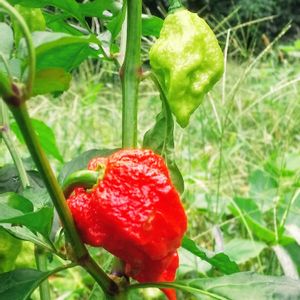 激辛唐辛子🌶️ブート・ジョロキア🥵色づき始めました😁辛いの大好き❤️ 2007年に世界一辛い🌶️唐辛子としてギネスに登録された唐辛子です。ハバネロの4倍辛いそうです‼️といっても、よくわからないよね?タバスコの500倍の辛さと言えばわかるかな⁉️丸ごと食べて病院送りになった人もいるそうだ🥶素手で触ると火傷の恐れがあると説明書に書いてある❗️原産地は北インド。 現在は世界3位の辛さに格下げされている。ちなみに1位はキャロライナ・リーバー(220万スコヴィル・辛さの単位)、2位はトリニダード・モルガ・スコーピオン(200万スコヴィル)、3位ブート・ジョロキア(100万スコヴィル)4位ハバネロ(25万スコヴィル)タバスコはわずか2000スコヴィル🤣とのこと。
