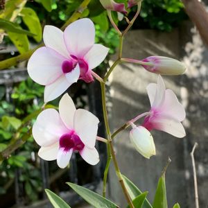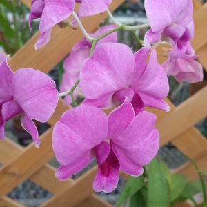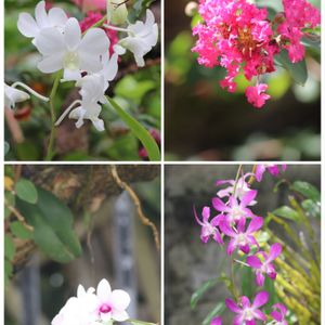 家主(サルスベリ)に店子の デンドロビウム・ビギバムピンクが 白に続き開花してます🌸 庭のサルスベリの木は5種類の蘭を 着生させ支えてます🌿