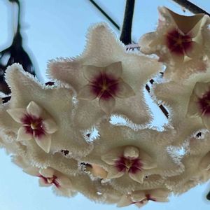 4/21に同時に咲き始めたホヤ達♡ マチルダちゃんが一気に開いたのに対し、 リップカラーはゆっくり(*´꒳`*) もけもけ可愛い♡けどへんな匂い(*´艸`)