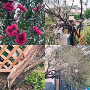 朝起きて、玄関ドアを開けてビックリ‼️ 台風8号の昨夜の風雨被害で 我が家の玄関横の魚竜梅が 折れてしまいました。🥲💦 真ん中の太い幹がバキッと...。 腕ほどの太さに成長して 毎年花の少ない寒い季節から 元気に咲いてくれていました。 両わきの小枝を残そうか、 思い切って元からギコギコ って、思い切れな〜い!!😱💦