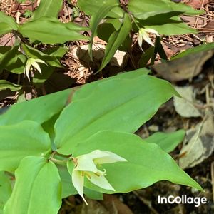 稚児百合 チゴユリ イヌサフラン科 チゴユリ属 分布 本州 四国 九州 花期 4〜6月 多年草 花被片の長さ 1.2〜1.6cmの披針形で6枚が釣鐘型に開く。 雄蕊 6個、柱頭は3裂する。 地下茎が横に伸びる。