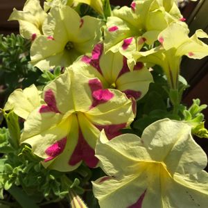 明るいクリーム色に濃いピンクのペチュニアをお迎えしちゃいました🤗 ペチュニアはお迎えしないと思っていたのに😅💦 よく見るとピンクの💓に見えませんか?