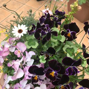 ローダンセマムさんが呑気過ぎて やっと咲いた🙌 けど ビオラ達がのびのび状態😓 切り戻しの決意がつかなーい🥺 🌸☘️寄植えは難しい〜🤔