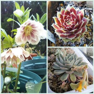こんにちは!😄 今日は曇り空です☁ 左側は、我が家の鉢植えのクリスマスローズ🌱 あとはいつの間にか地植えになってしまいました😅 右上はセンペルの『ラブリーレディ』💖 綺麗な仔でしょ?😻 右下は、先日アップした『薄氷』と思われる仔🌱 花が咲いたら名前わかるかも〜って…。 まめきちちゃん、わかるかな?😉💕