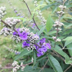 おはようございます😊 今日は朝から雨☔️ 昨日より気温が低く 最高23度😌 過ごしやすいです♡ こちら半年前に 地植えにした 西洋ニンジンボク💜 お花がポツポツついてきました💕😀 上向きに伸びて咲く様子✨ 元気いっぱいな感じです♬🙌 もう少し伸びて 木らしくなってきたら 足元に何を植えようかなと 今からワクワクしています♪