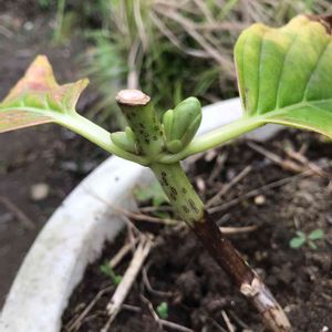 挿し穂しいた、紫陽花ポップコーン 芽だ出て来た^ ^ということは根がついたということかな?? いまから、来年が楽しみ
