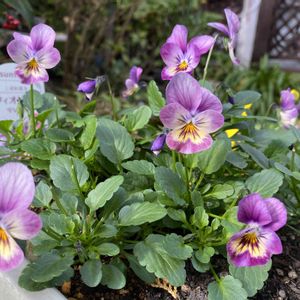 フィオリーナ💜💜💜💛💛💛 よ〜く咲いてくれるので 北側玄関横に移動🎶 華やかだわ〜🥰 寒さ忘れるわ〜😆