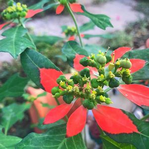 *サマーポインセチア* (ショウジョウソウ) 零れ種で あちらこちらに 咲いてます♪