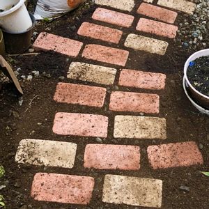 とりあえずレンガ並べてみた😆 50個35分 まだ頑張れそうだったけど 怪我しないうちにまた明日。 色の置き換え 並びかえをする楽しみは 明日へ置いとく🙌 家を建てる時 外構?を言われるままに ほぼ砂利とコンクリートにしたので 今頃、色味が欲しくなった と、草花をこれ以上増やしたらあかんな と思うので、レンガで楽しんでみた。 色々ホームセンター回り ムサシの乱形石を置きたい!と 決心して買いに行ったら 好みの色が売り切れ😭 ご縁なかったね コーナン、アグロのミックスレンガは 焦茶がほんまに焦げ色 今日行ったモリスは明るいミックス ほんで厚みが半分くらいなので 1枚108円 50枚買ってみたらぴったりだった 茶色 32個 クリーム 12個 ブラウン 6個 ブラウンはほぼ目立たないよ なので明るい 気が変わった時に剥がせるように セメントはしません。 雨が降って、踏んで、草や苔が生えて 早くなじみますように🙏 あとは 机と椅子を作りたくて セメント20kg600円くらいで 売ってたんやけど、他の商品に比べて あまりにも安くて、初心者向けじゃないのかもしれんなーってやめといた セメント?モルタル?造形 ちょっとまだ不安 もっと勉強してから買おう。 レンガ運びで握力がやばく 身体も痛くなって爆睡した(笑笑 起きたら超回復❣️ まだまだ若いわ(笑笑