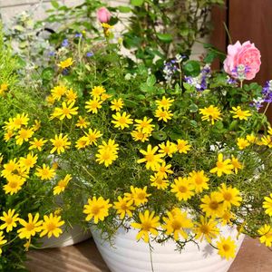 おはようございます♪ "ダールバルグデイジー" 別名"ディソイディア" 冬の間、地上部はほぼ枯れていましたが復活!!しました🌼日本では一年草扱いのようですが、無事冬越しした忍耐強い子🤣 ふわふわした繊細な葉🌱と 直径2センチ程の小さなお花が 風に揺れて気持ちよさそうです🌼 今日は夏日になるとか💦 すでに暑いっ☀️ 熱中症&日焼けに注意してお過ごし下さい♪