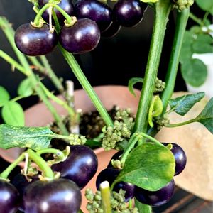 アメリカイヌホオズキ (亜米利加犬酸漿) 茎が細くて よく枝分かれし、大きくなって 横に広がる 厄介な "雑草" なのだが、この 光沢のある 黒真珠のような果実は、憎めないな~~ 😅 🏷ふぞろいの果実たち 🏷ちっちゃいものクラブ