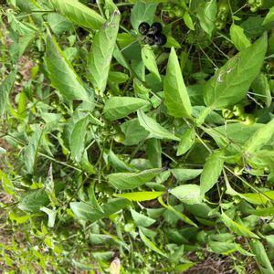 画像にミスがあったので、削除再投稿しますm(_ _;)m アメリカイヌホオズキ 🌼✨ (たぶん😓) 道端シリーズ🌱 です 前picの観賞用とうがらしつながりで、黒い実のこの子を…… イヌホオズキであることはすぐ分かったのですが、 ・イヌホオズキ ・オオイヌホオズキ ・テリミノイヌホオズキ ・カンザシイヌホオズキ(テリミノイヌホオズキの一種) ・アメリカイヌホオズキ さて、これらの中のどれなのか……😅 特徴調べて、たぶん、オオイヌホオズキとテリミノイヌホオズキ、カンザシイヌホオズキは除外……たぶん……💧 見分けられる方、いらっしゃいましたら教えて下さいm(_ _)m💦 イヌホオズキとアメリカイヌホオズキの2択で、 🌱花序または小果柄、つまり花または果実がどのように枝から生えてるかで、 私は一応、アメリカイヌホオズキに軍配をあげました😅 ・イヌホオズキ …… 枝の左右から交互に花枝だが出てくる総状というのが分かりやすいタイプ ・アメリカイヌホオズキ …… よく見ると一点ではないが、パッと見は一点に見えるタイプ 🌱実の光沢ぐあいは ・イヌホオズキ …… 艶消し~弱光沢 ・アメリカイヌホオズキ …… 弱光沢~強光沢 と言われても、微妙すぎて判別できませんでした😰 中には種の数を数えて見分けようとする強者もいらっしゃるみたいです😅 花はpicでは分かりにくいですが、ほんのり紫がかった花もありました🌼 アメリカイヌホオズキは秋半ばくらいになると、はっきり紫の花の様子も見られることがあるということで、 また様子を見に行ってみたいと思います😌