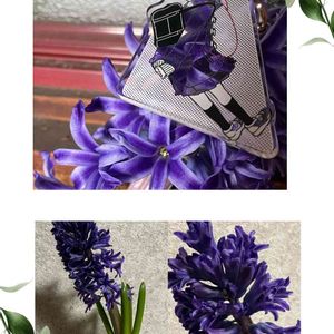 ♡ʾʾ(*´∇`)ノ こんばんは〜 お疲れ様です 紫色の水栽培のヒヤシンスが、 ボリューム満点に咲き、いい香りがしています🎶 茎の周囲に小さな花が密集しています ボリュームありすぎで倒れてきてしまう〜〜 初めて知ったんですが、この花が終わって、地植えにすると来年咲くかもって! 花は小さいかもしれないけどね やってみます❣️ あおいちゃんに纏ってもらいました