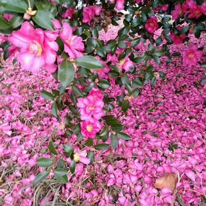 夕方散歩🐶🚶 山茶花の絨毯🌸 寒くなりましたね❄🎄 風邪に気をつけましょう😷