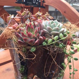@cacoちゃん作😆🎈✨✨ウッドプランター✨ こちらも🌙⭐️🌜✨夜な夜な作🌚 ❤️イメージは春爛漫💐😝 セダム森の予定がやっぱり紅葉多肉 使っちゃうよね〜😆🎉