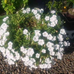 ペチュニア 〜おゆきちゃんとさくらさくら〜 ふんわりと艶やかに咲き誇っています✨ 降雨でも自然と花が閉じて身を守るので、傷みにくく、病気にも強い放置で🆗です。 水とお日様と毎日の声かけのみで、元気に美しく育ちました! よく公共植栽や造園用のグランドカバーなどで利用されています。真夏の間も咲きつづけて、雪の下(マイナス10度)でも越冬でき、グランドカバーでの利用の場合は、花がらもつまなくても大丈夫というスゴい子達です✨ 今回は鉢植えにしたので、適度に花がらをつんで姿形が乱れてきたので、切り戻しをかけました。結構、広がりがすごいので、適度に切り花にして飾っています。 来年はグランドカバーで植えてみてもいいかなと思います♬(^o^)